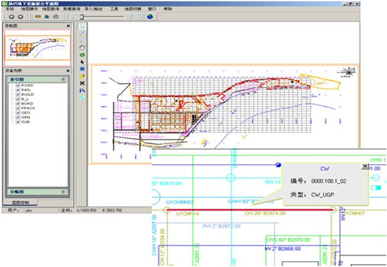 化工園總圖規(guī)劃系統(tǒng)將以原始圖紙資料為基礎(chǔ)做成的管廊、管線數(shù)據(jù),以二維展現(xiàn)的方式加載到系統(tǒng)中,它不僅支持海量的矢量、影像和業(yè)務(wù)屬性等數(shù)據(jù)的加載和顯示